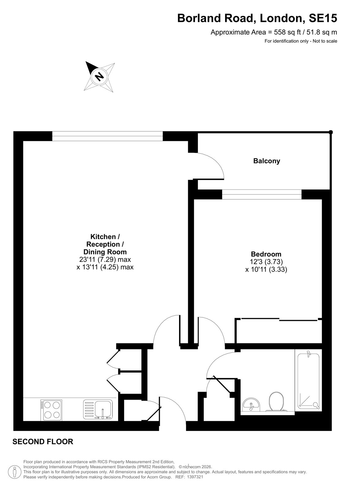 This well-proportioned property measures in excess of 550sqft and comprises of; a good sized open-plan kitchen/living/dining space, one double bedroom with the fitted wardrobes and a well presented three-piece modern bathroom suite. This property has access to it’s own private balcony and Borland Road is just a short walk to Peckham Rye Park and Peckham and Nunhead station.