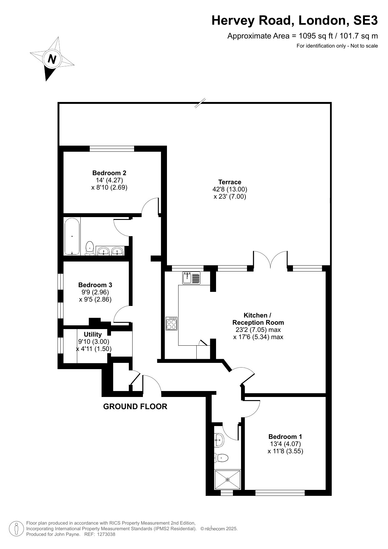 Measuring almost 1100sqft internally you have a large primary bedroom with bespoke built in wardrobes the whole length of the wall, ensuite shower room, utility room, double bedroom, family bathroom with ‘His&Hers’ sinks, double bedroom with built in wardrobe and an expansive kitchen/living/diner which is fully fitted and creates a sociable space for families or great for entraining and direct access out to a large private terrace which faces to the South, capturing sun all day and overlooks the well maintained shared garden. Additional benefits include, wooden engineered flooring, gas central heating, double glazed windows, great storage, residents parking and bike storage.