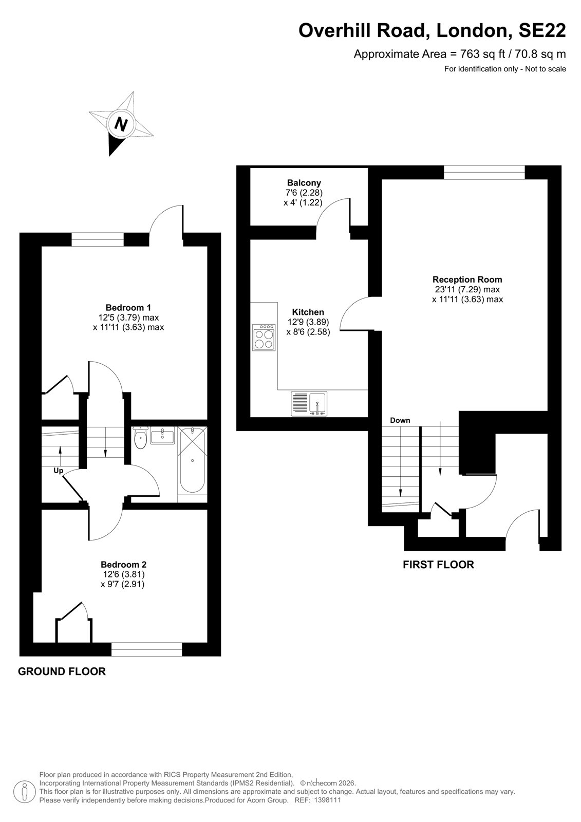 Arranged over two floors and extending to approximately 763 sq. ft, the property feels more like a house than a flat, with a clear separation between the living and sleeping areas. The first floor is dedicated to day-to-day living and entertaining, featuring a bright and spacious reception room with ample space for both seating and dining. Large windows allow plenty of natural light to flood the room, creating a comfortable and welcoming environment.
