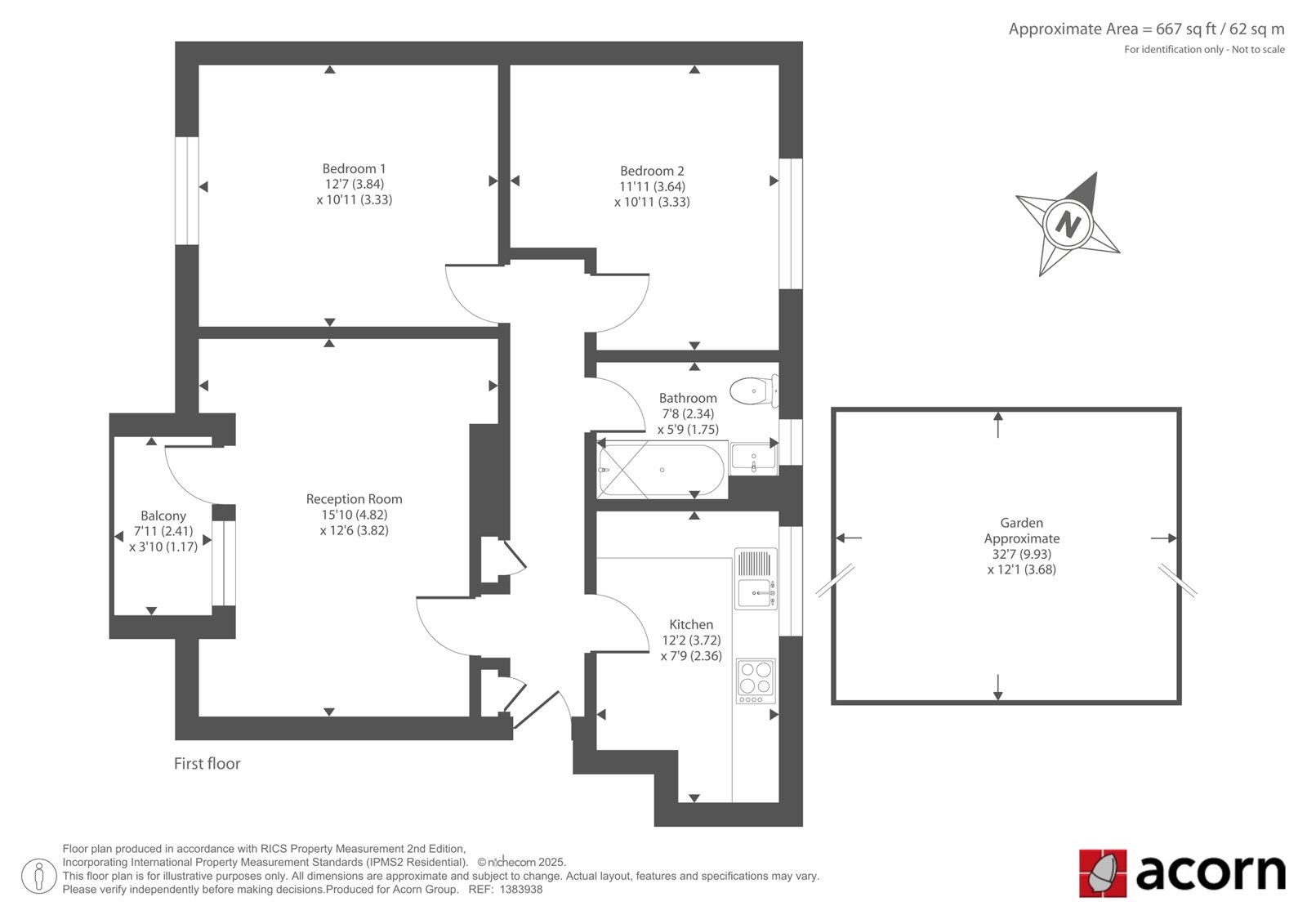 Occupying 667 sq ft, the accommodation is bathed in natural light. The well-proportioned living spaces flow onto a private balcony, while the garden offers a rare sanctuary for outdoor dining and entertaining. The private external storage unit is a significant asset for London living, providing secure space for bikes and equipment.