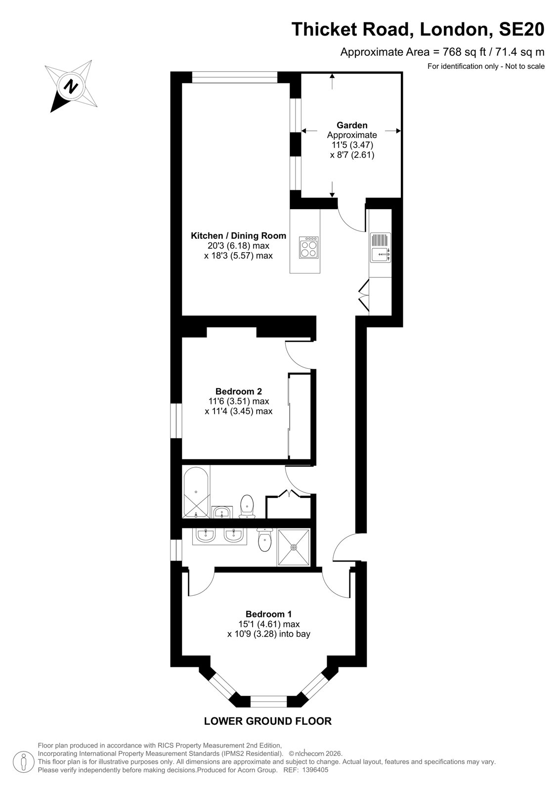 This thoughtfully upgraded property offers a distinctive and contemporary living space with modern finishes throughout. The principal reception room extends to 20ft featuring solid wood chevron flooring and bi-fold doors opening onto the garden. The room flows seamlessly into the kitchen which features integrated appliances, bespoke worktops, and a breakfast bar. Both bedrooms are generously proportioned doubles, with the principal bedroom benefiting from an en suite bathroom, whilst the second bedroom features a useful alcove ideal for a study area or home office. The en suite bathroom is comprehensively tiled with a double vanity unit and rainfall shower. The family bathroom comprises a bath with rainfall shower overhead. Outside, a private low maintenance decked garden with direct access to communal lawns beyond enjoys a favourable southerly aspect - ideal for al fresco entertaining during the warmer months. Additional advantages include a long lease and off-street residents parking with an allocated space.