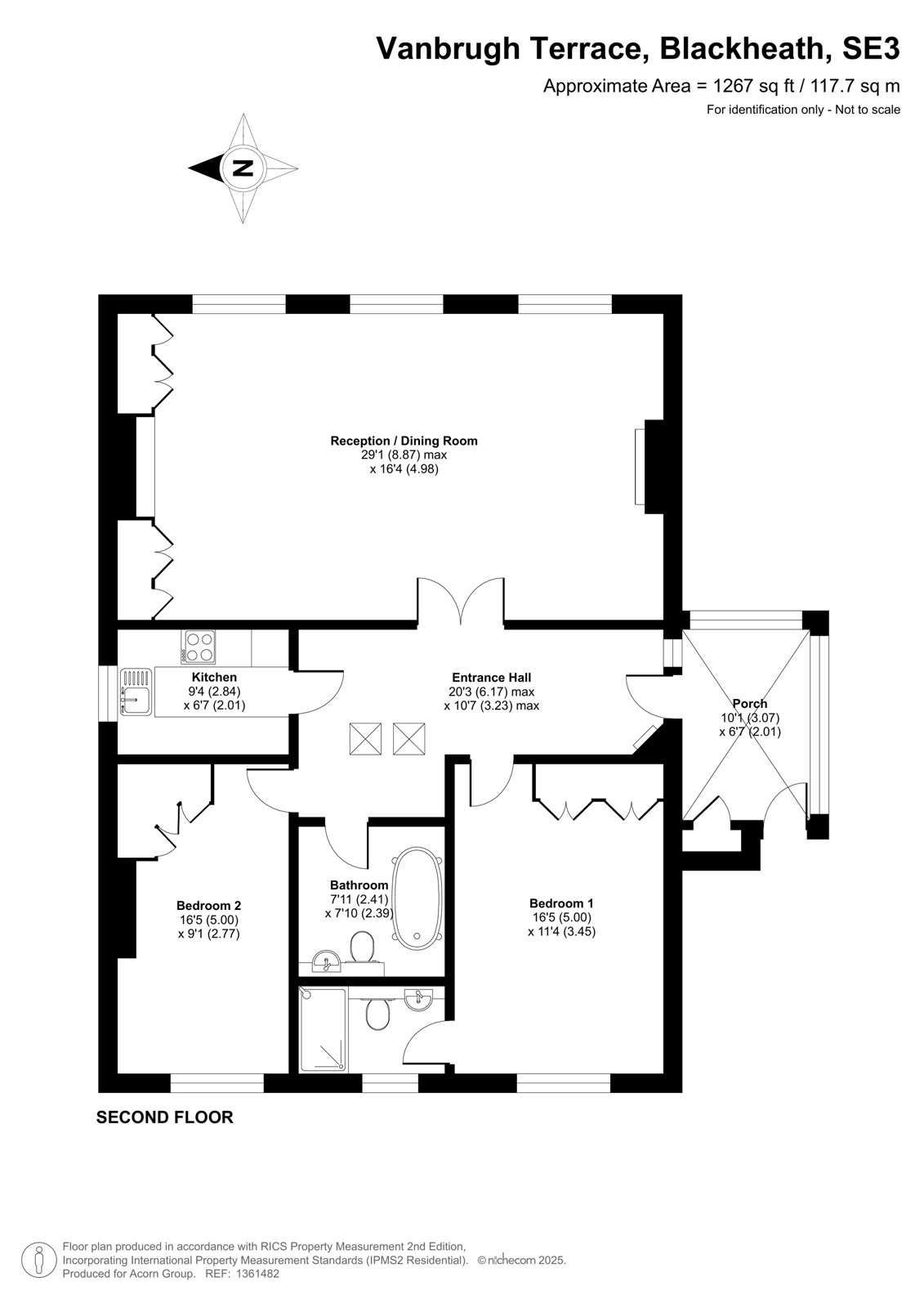 An exquisite, two bedroom conversion flat with potential for adaptation to a 3 bedroom, located within a Grade II listed, imposing, detached house with unobstructed views of the open heath and Greenwich Park. Approx. 1,267 sq ft / 117.7 sq m – Second Floor.