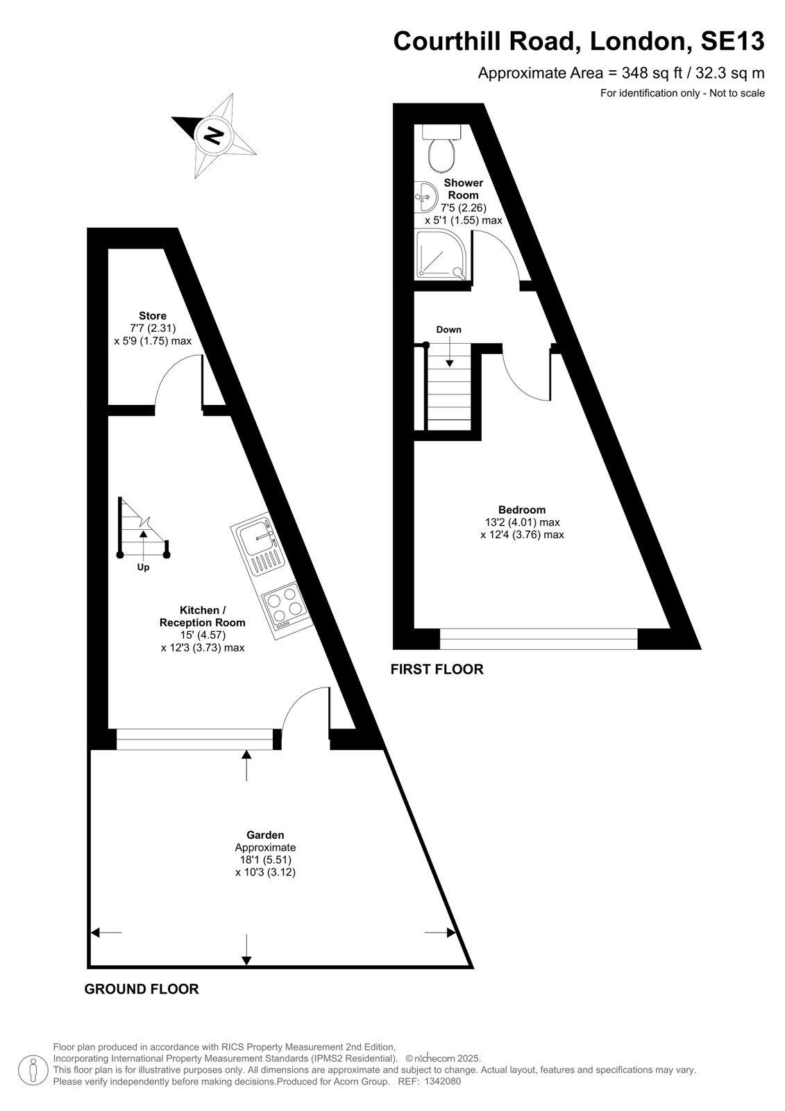 On the first floor, you’ll find a bright and well-proportioned double bedroom along with a stylish, modern shower room. The ground floor features a contemporary kitchen that flows into a reception space, creating a cosy yet functional living area. To the rear, a separate study provides an excellent work-from-home setup or flexible additional space to suit your needs. Externally, the house benefits from a private front garden, adding a welcome touch of greenery and outdoor living. Courthill Road is a quiet residential street with easy access to local amenities and excellent transport connections, including nearby Lewisham Station for DLR and National Rail services.