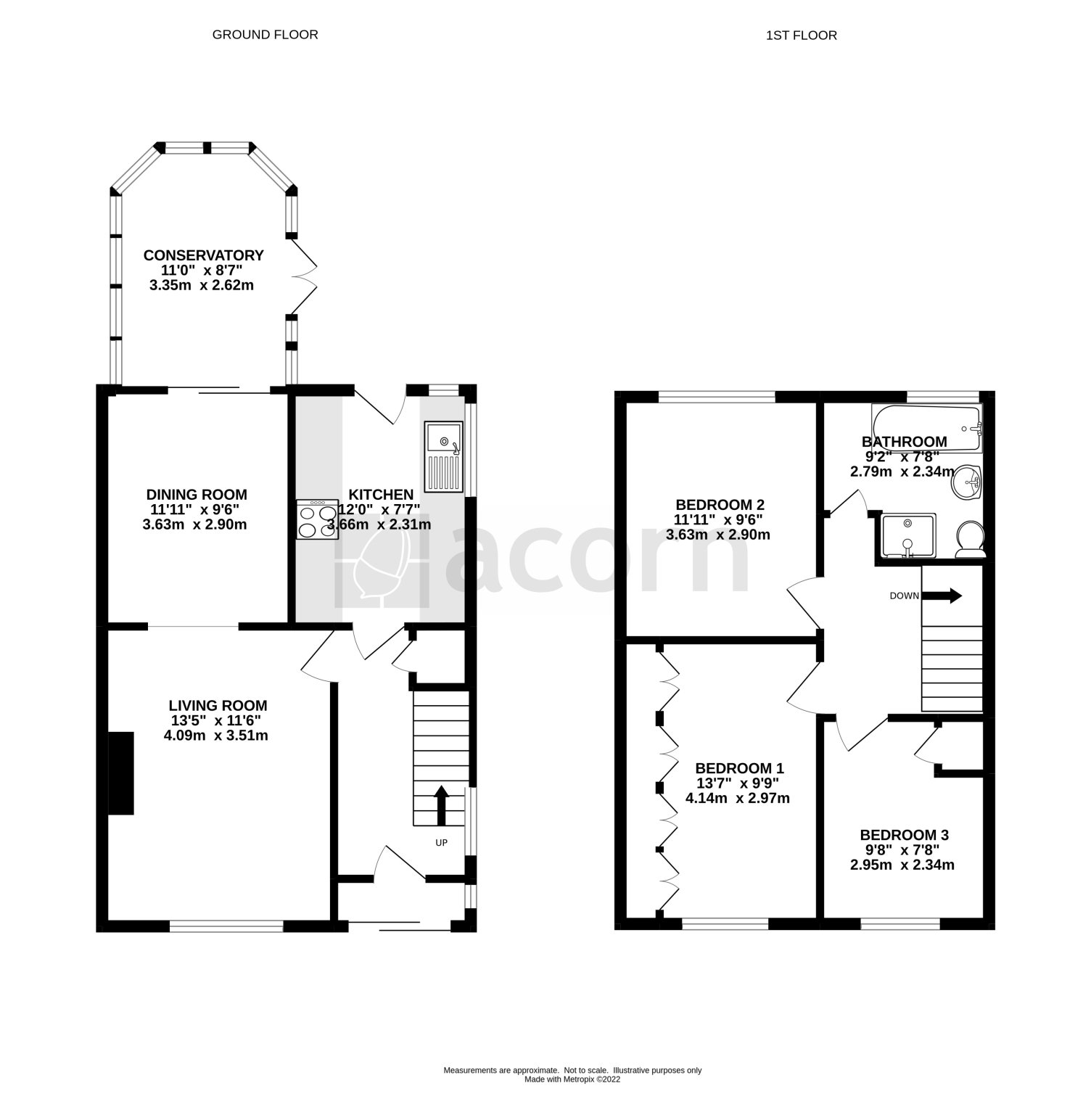 Property comprises – Entrance porch, entrance hall with under stairs storage, 13’5x11’6 lounge, 11’11x9’6 dining room , conservatory, and separate kitchen with door leading out to the rear garden.