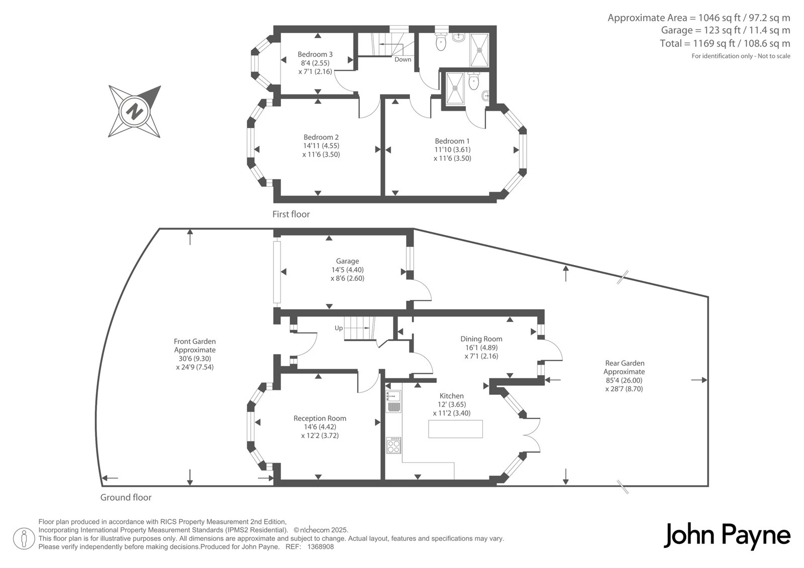 To the front, the property benefits from a driveway and attached garage, providing ample storage or off-street parking. The rear garden, approximately 85 ft in length, offers a peaceful retreat with plenty of space for outdoor dining and family activities.