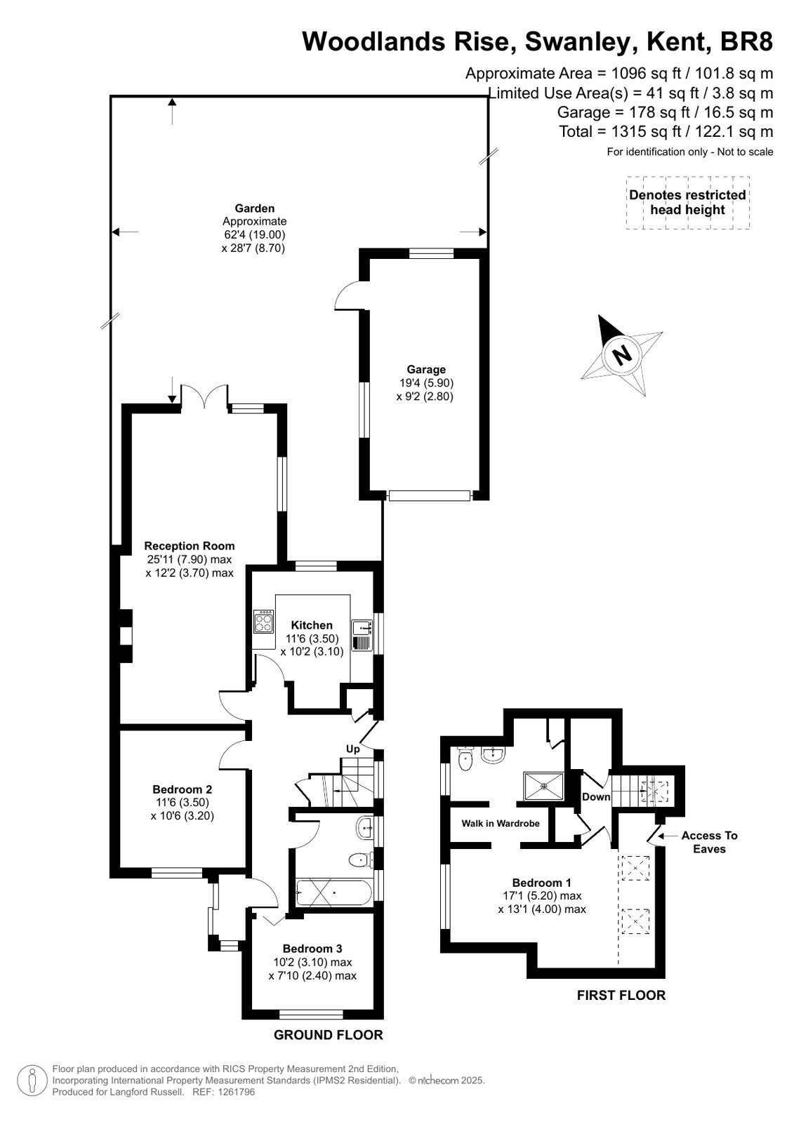 To the first floor – 17’1x13’1 master bedroom with walk in wardrobe, ample eve storage and en-suite shower room.