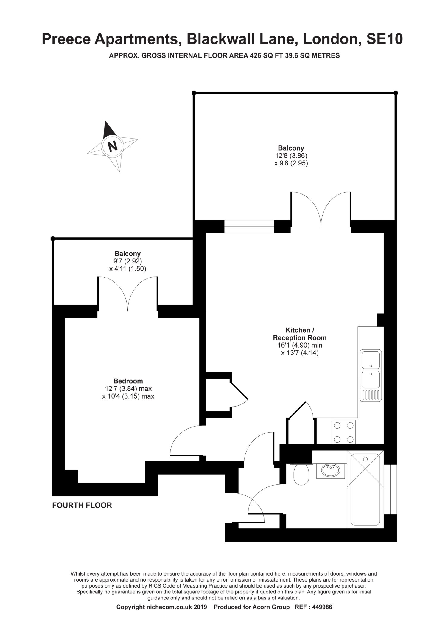Kitchen/Reception Room 4.90m x 4.14m (16'1" x 13'7") Bedroom 3.84m x 3.15m (12'7" x 10'4")