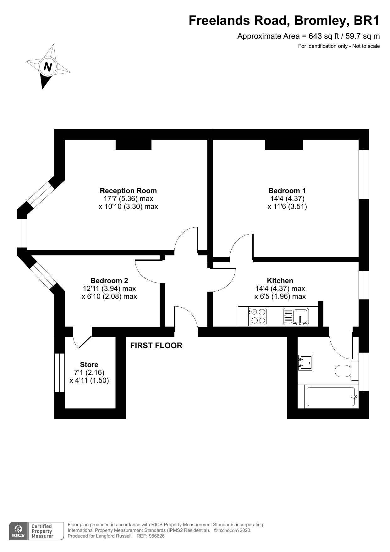 Reception Room 17'7 x 10'10 (5.36m x 3.3m), Kitchen 14'4 x 6'5 (4.37m x 1.96m), Bedroom 1 14'4 x 11'6 (4.37m x 3.51m), Bedroom 2 12'11 x 6'10 (3.94m x 2.08m), Store Room 7'1 x 4'11 (2.16m x 1.5m)