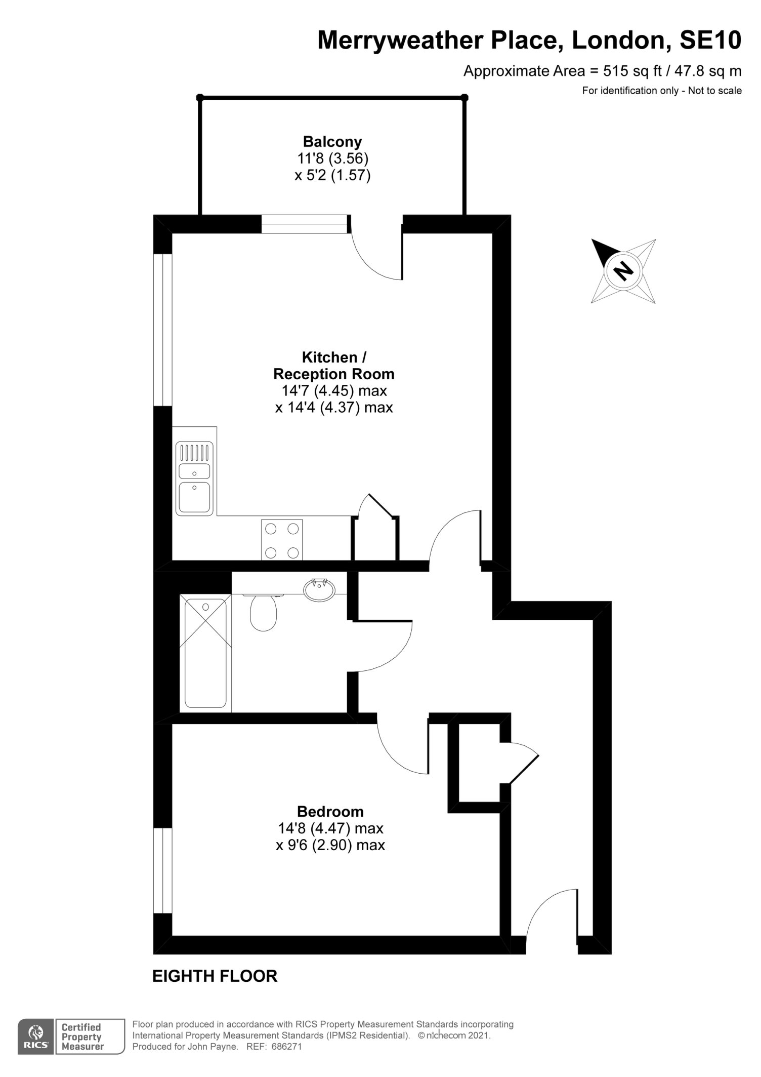 Kitchen/Reception Room 14'7 (4.45) max x 14'1 (4.37) max