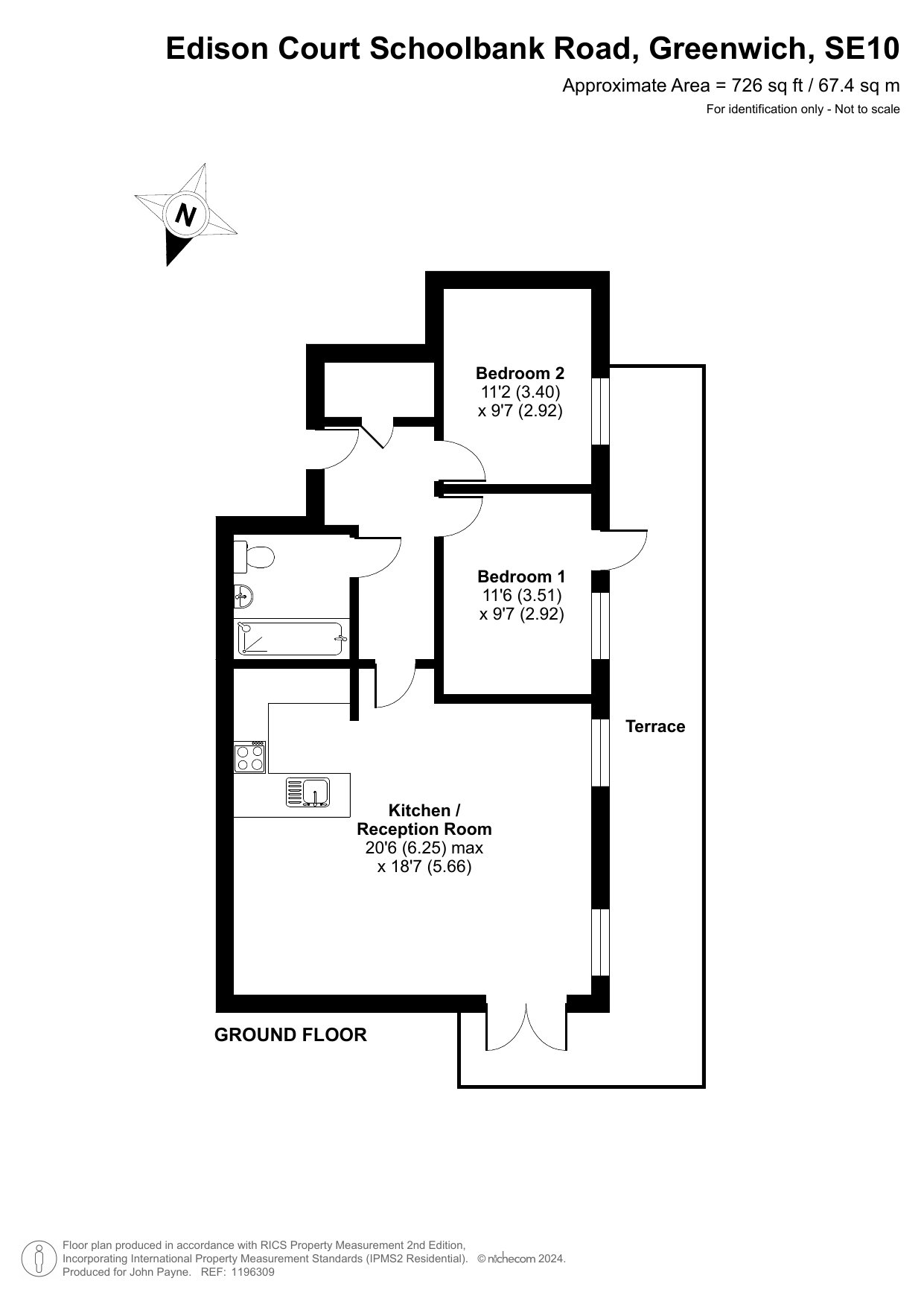 Kitchen/Reception 20'6 x 18'7 (6.25 x 5.66m) Bedroom One 11'6 x 9'7 (3.51 x 2.92m) Bedroom Two 11'2 x 9'7 (3.40 x 2.92m)