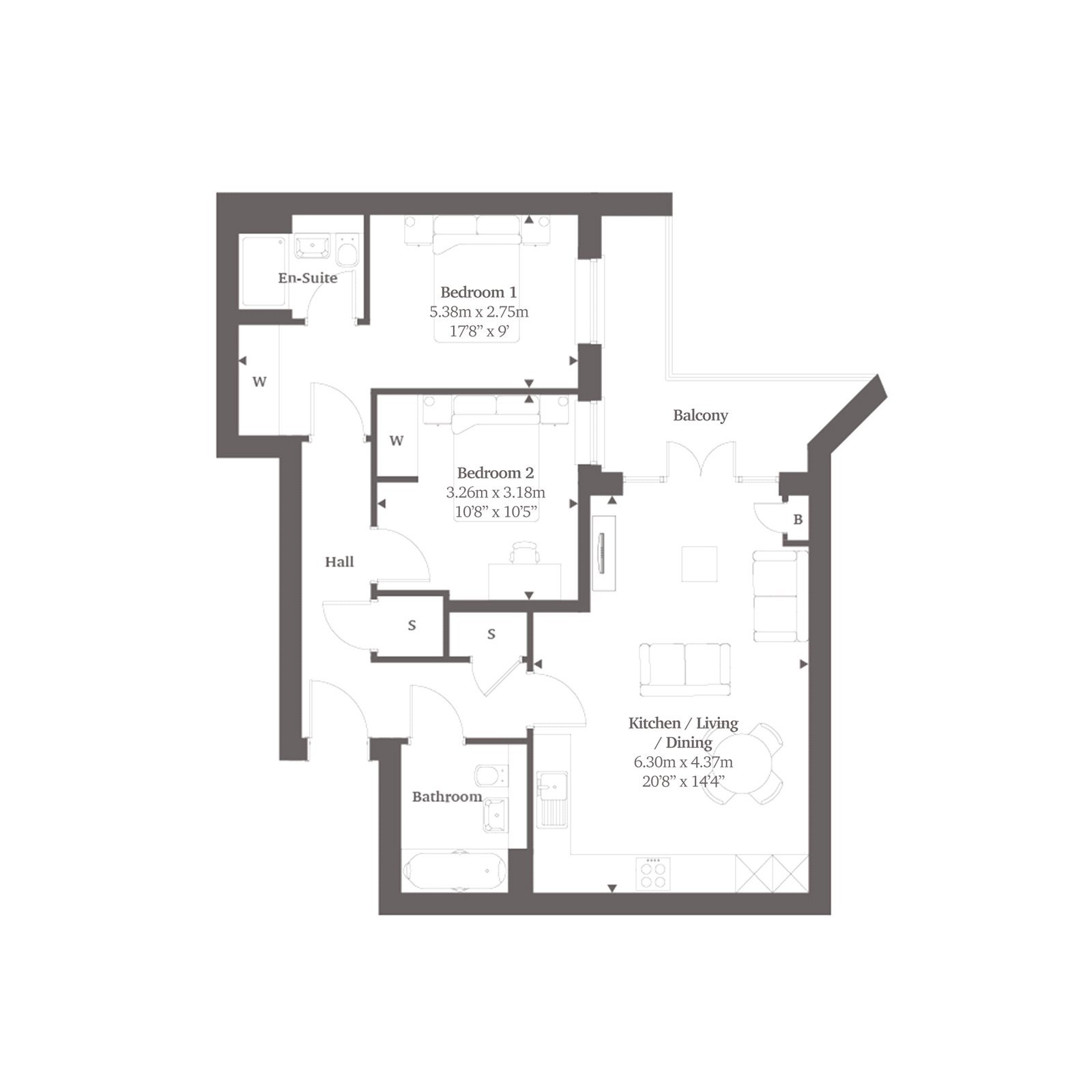 Positioned within the prestigious River Walk development, Plot 18 is a brand new sophisticated two-bedroom, two-bathroom apartment set on the second floor offers a refined blend of style and convenience in the heart of Tonbridge. Designed for modern living, the open-plan layout is both spacious and light-filled, with seamless flow between the kitchen, dining, and lounge areas. Both bedrooms feature fitted wardrobes, with the principal suite benefiting from a sleek en-suite.