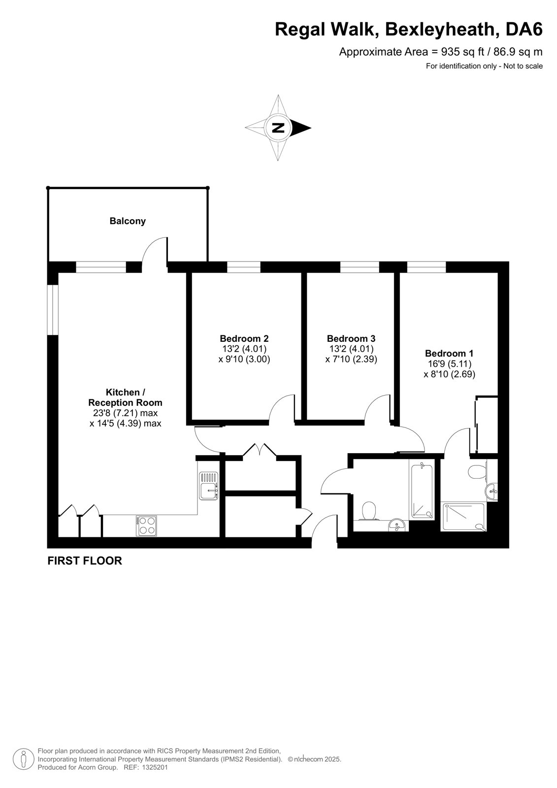 A spacious entrance hallway leads to a full-width open-plan kitchen and reception room stretching over 23 feet, complete with integrated appliances and ample space to dine, relax or entertain. Floor-to-ceiling glazing opens directly onto a private balcony, adding natural light and a touch of outdoor living. All three bedrooms are comfortable doubles, with the principal benefitting from its own ensuite shower room. A sleek family bathroom, integrated storage and a utility cupboard complete the internal layout, all clearly set out in the accompanying floorplan.