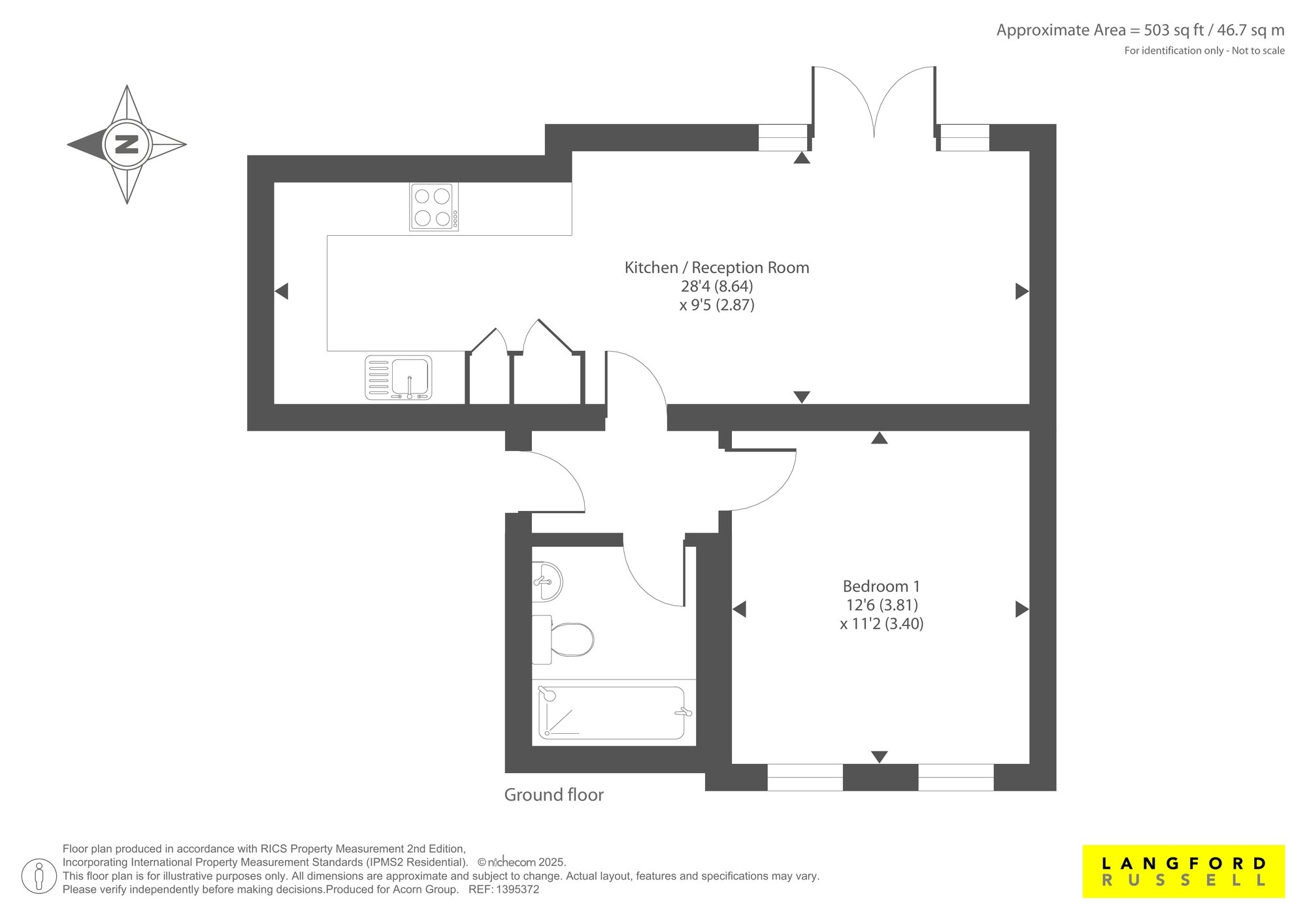 Property comprises – Entrance Hall, 28’4x9’5 open plan reception/kitchen,12’6x11’2 double bedroom, and modern fitted bathroom. The reception area has opening patio doors to a communal courtyard garden area.