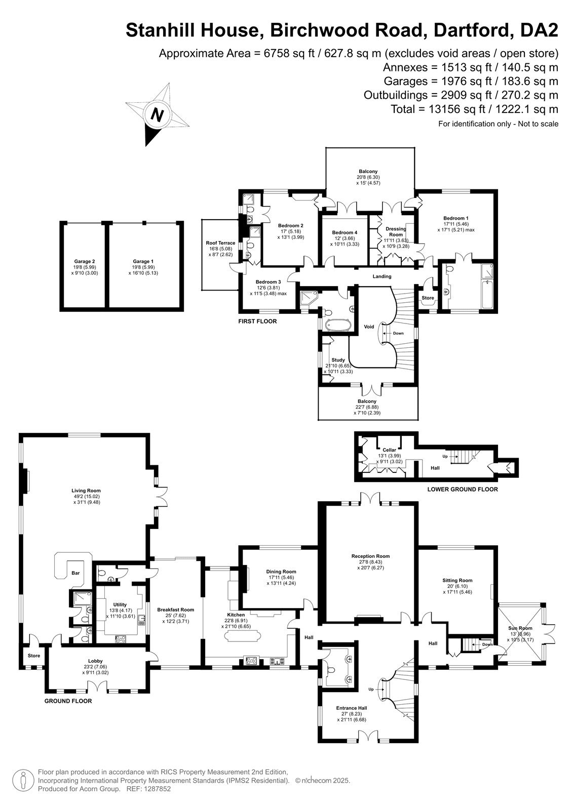 Across the first floor there are four generously proportioned double bedrooms and a family bathroom. The luxurious principal suite includes a walk-in dressing room, en-suite bathroom, and direct access to a rear-facing balcony offering picturesque views over the grounds.