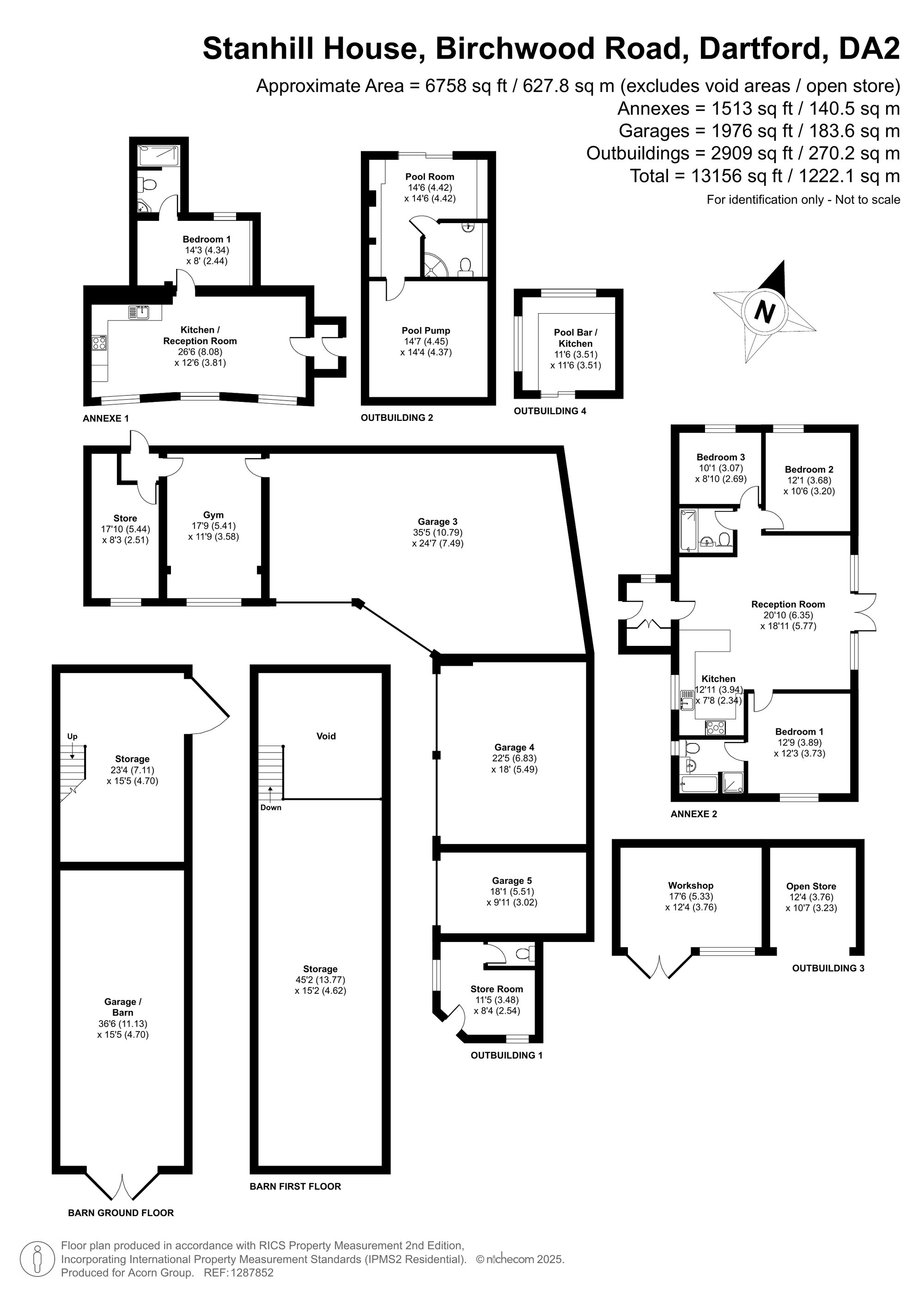 Set behind two sets of electronically controlled gates, this remarkable country residence spans approximately 13,000 sq ft and sits within 6 acres of meticulously landscaped grounds. A true entertainer’s paradise, the estate also includes two additional detached dwellings: a charming one-bedroom bungalow and a separate three-bedroom bungalow—perfect for long-term guests, extended family, or staff accommodation.