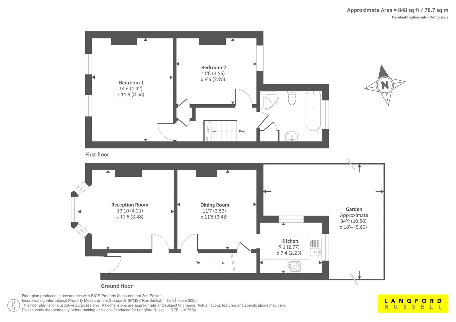 Ground floor accommodation comprises a large front reception with bay window, rear dining room and fitted kitchen leading onto garden. Upstairs consists of two double bedrooms and three-piece bathroom.