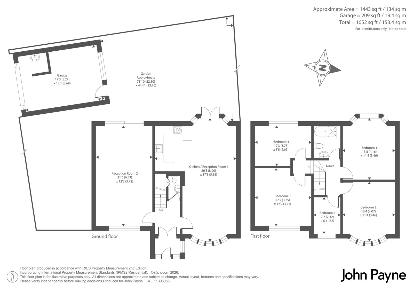 To the first floor you will find the five bedrooms and family bathroom. Four double bedrooms, Bedroom 1, 13ft x 11ft, with bay window. Bedroom 2, 13ft x 11ft, also with bay window. Bedroom 3, 12ft x 12ft, Bedroom 4, 12ft x 8ft. All bedrooms with carpet as fitted and double glazed windows. Bedroom 5 or study, 7ft x 6ft with carpet and double glazed window. The family bathroom is fitted with a three piece suite comprising a vanity wash hand basin with storage under, low level WC and a panelled bath with shower over.
