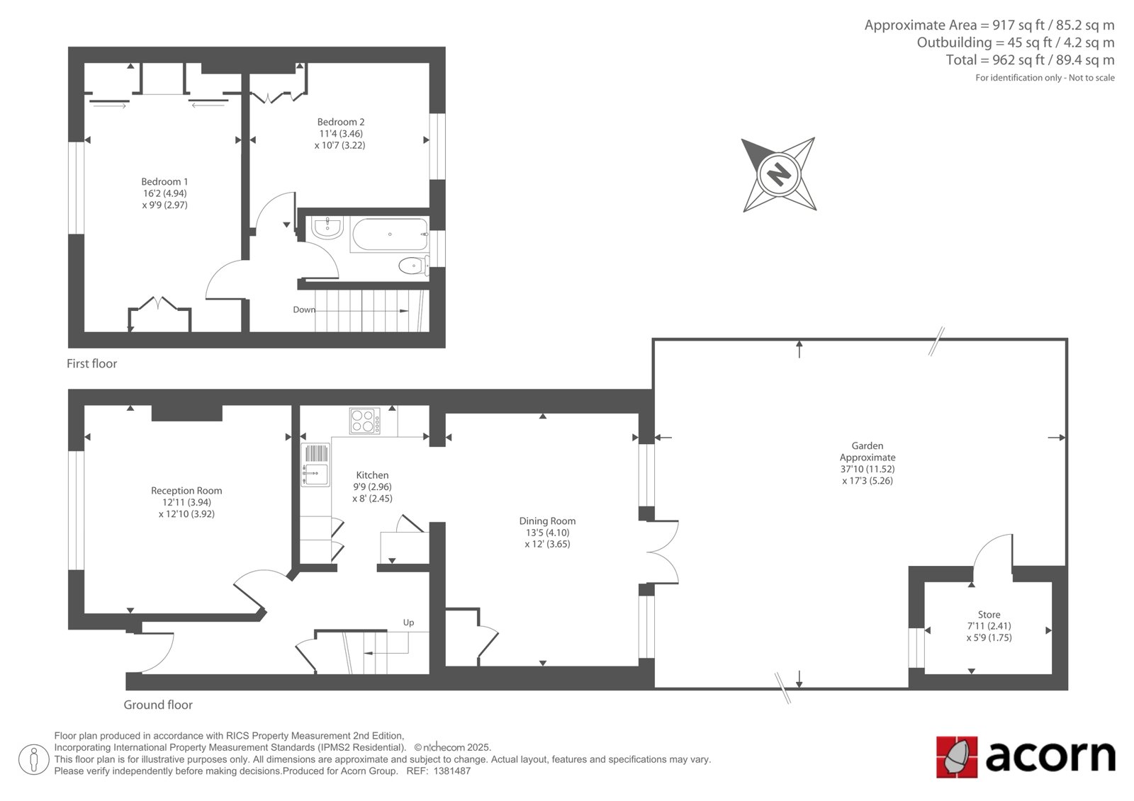 Upstairs, the home offers a generous primary bedroom and a second double bedroom, ideal for families, along with a contemporary family bathroom.