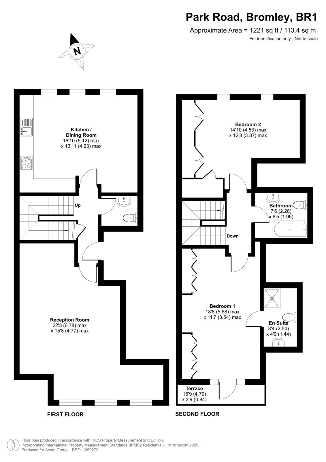 Set over 2 floors the apartment boasts a generous floor area of circa 1250 sq. ft. The main living areas are on the first floor consisting of large kitchen and dining room, living room with corner study and downstairs W.C. Upstairs on the 2nd floor there are 2 double bedrooms, one with ensuite and a separate family bathroom. The master bedroom also has a beautiful south facing balcony looking out to the church and Bromley beyond.
