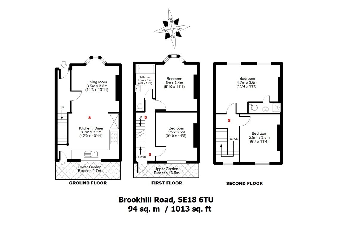 To the second floor you will find a further two bedrooms. Bedroom three, 11ft x 9ft with carpet as fitted and double glazed window to rear. Bedroom one, 15ft x 11ft, with carpet as fitted and two double glazed windows to the front. This bedroom also has an en-suite shower room fitted with a walk in shower, low level WC and wash hand basin.