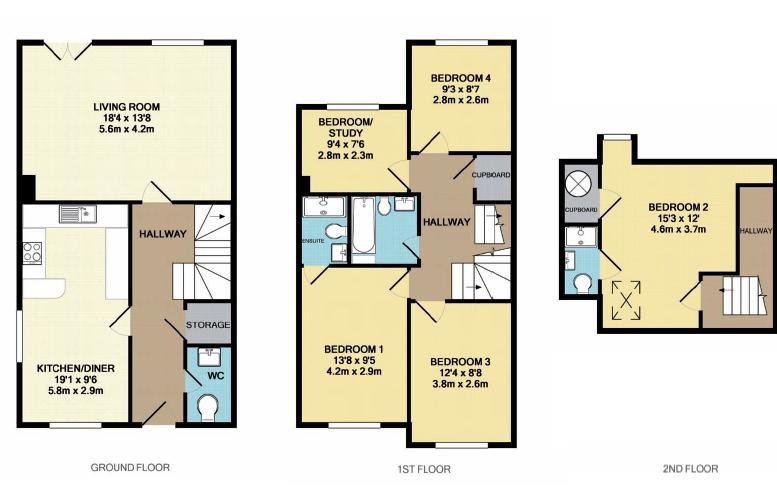 Kitchen/Diner 19’1 x 9’6 (5.8m x 2.9m), Living Room 18’4 x 13’8 (5.6m x 4.2m), Bedroom 1 13’8 x 9’5 (4.2m x 2.9m), Bedroom 3 12’4 x 8’8 (3.8m x 2.6m), Bedroom Study 9’4 x 7’6 (2.8m x 2.3m), Bedroom 4 9’3 x 8’7 (2.8m x 2.6m), Bedroom 2 15’3 x 12’ (4.6m x 3.7m) To check broadband and mobile phone coverage please visit Ofcom here ofcom.org.uk/phones-telecoms-and-internet/advice-for-consumers/advice/ofcom-checker