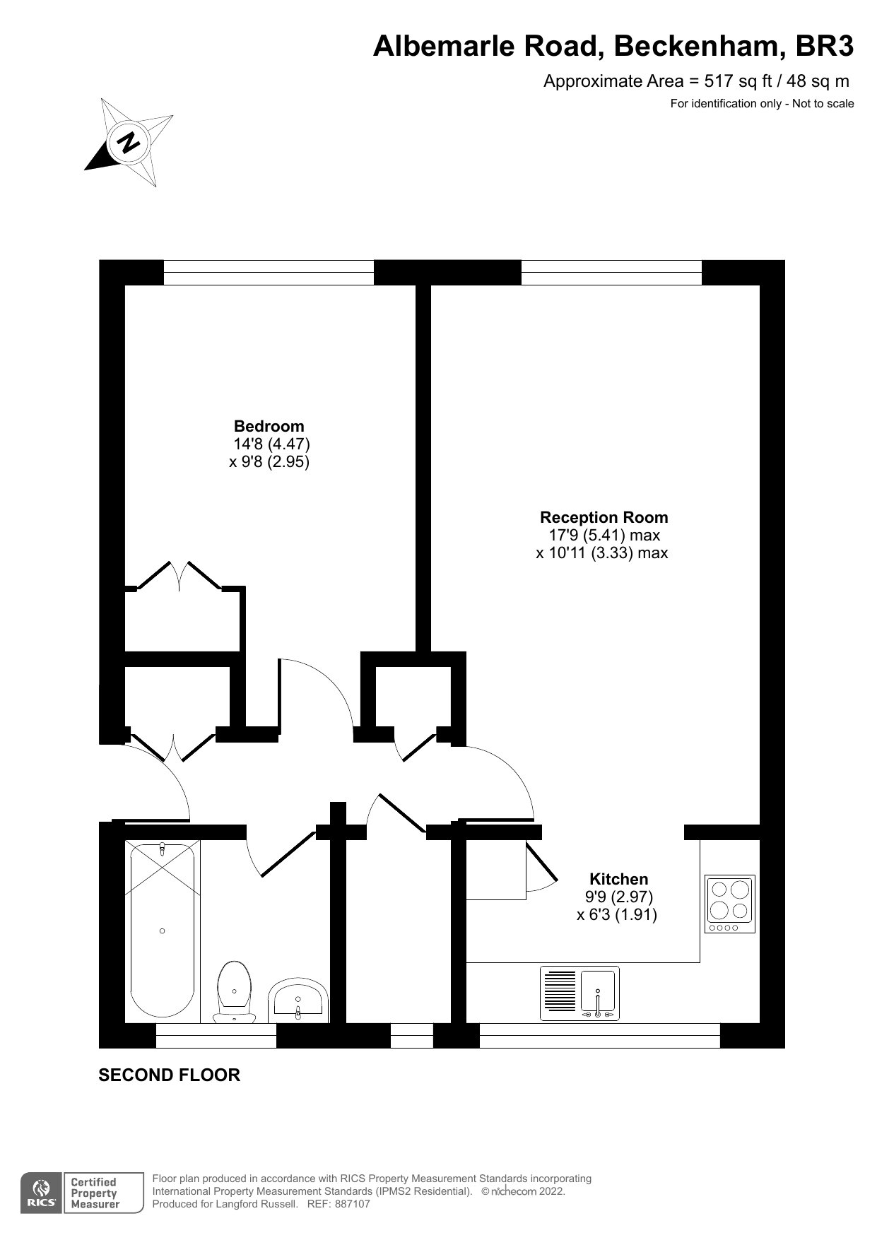 Reception 17'9 x 10'11, Kitchen 9'9 x 6'3, Bedroom 14'8 x 9'8