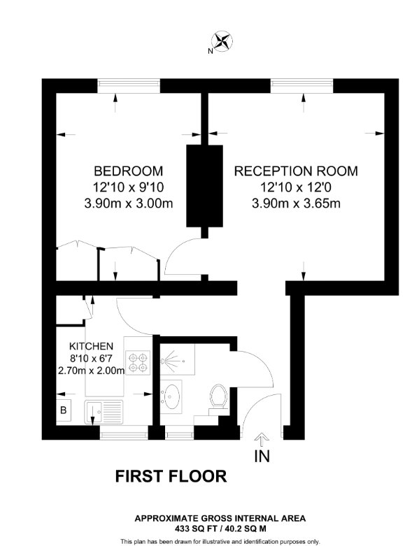 Kitchen: 8'10 x 6'7 Bedroom: 12'10 x 9'10 Reception Room: 12'10 x 12'0