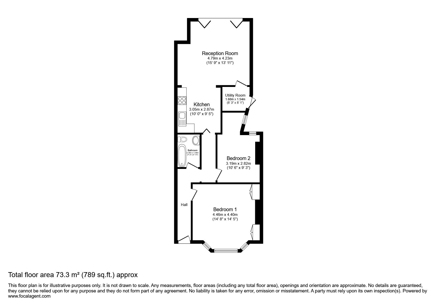 Reception Room: 4.79m x 4.23m Kitchen: 3.05m x 2.87m Bedroom: 4.46m x 4.40m Bedroom 2: 3.19m x 2.82m Utility Room: 1.60m x 1.54m Bathroom: dimensions pending verification.