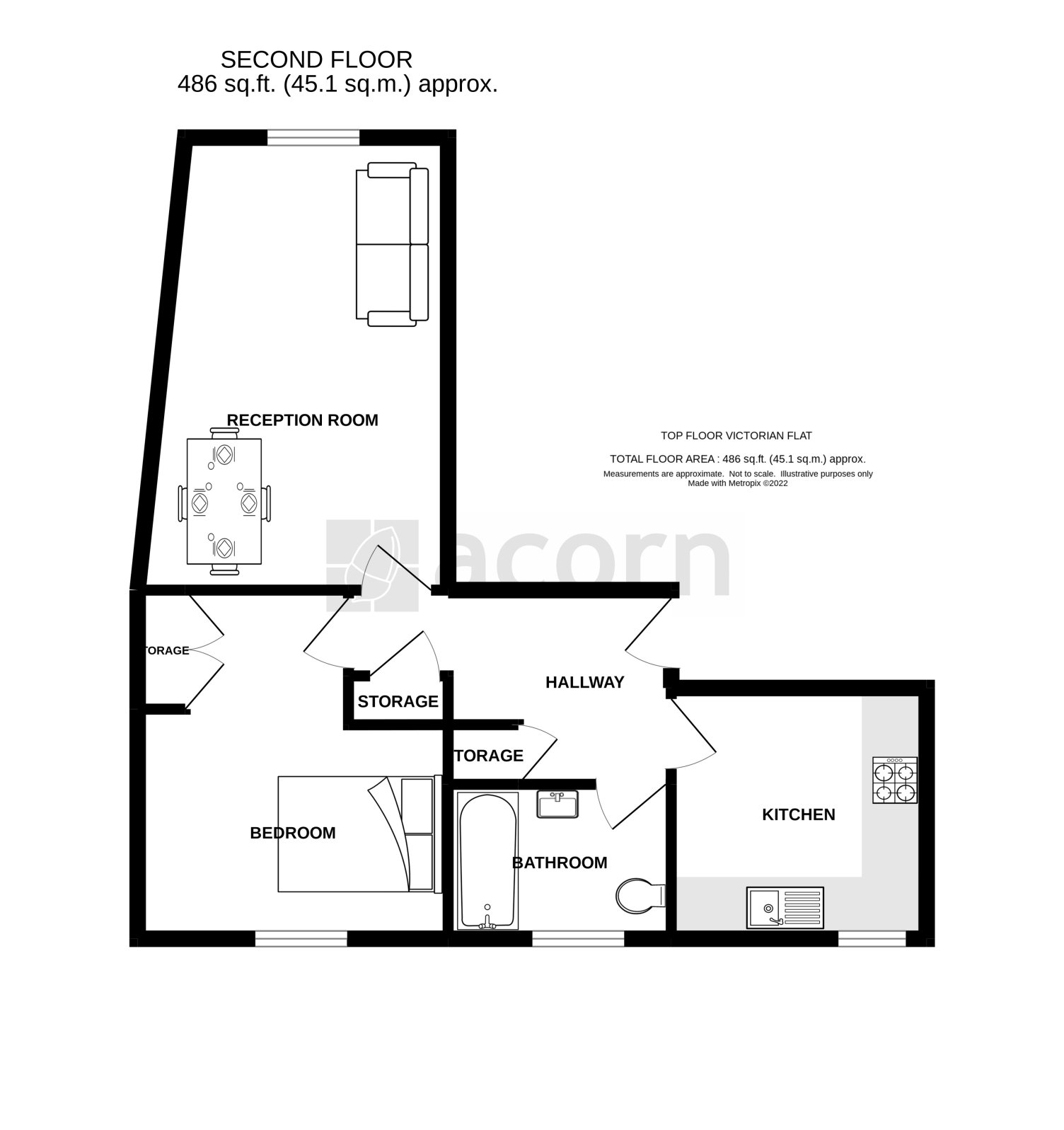 A well-proportioned design offer a large double bedroom, modern kitchen and practical living room with large sash windows.