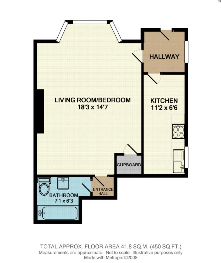 Living Room/Bedroom 18'3 x 14'7, Kitchen 11'2 x 6'6, Bathroom 7'1 x 6'3 To check broadband and mobile phone coverage please visit Ofcom here ofcom.org.uk/phones-telecoms-and-internet/advice-for-consumers/advice/ofcom-checker