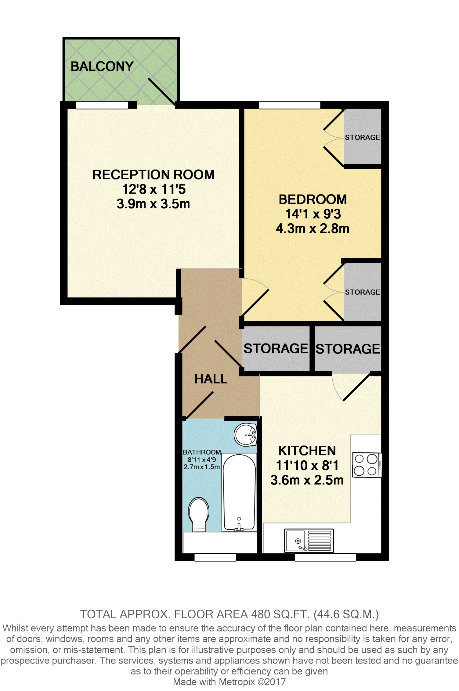 Reception Room: 12'8 x 11'5 Kitchen: 11'10 x 8'1 Bedroom: 14'1 x 9'3 Bathroom: 8'11 x 4'9.