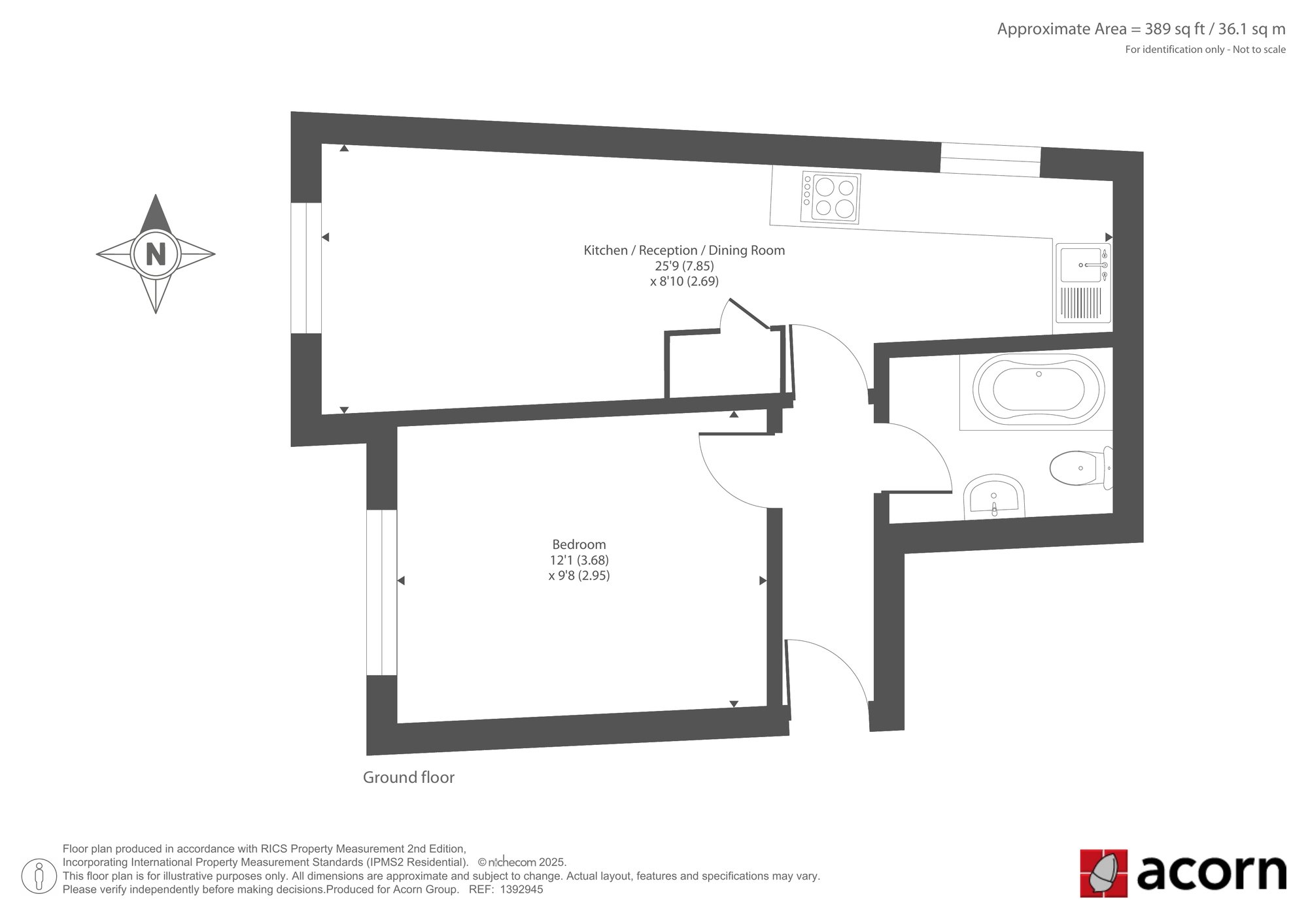 Bedroom 12'1 (3.68 x 9'8 (2.95)