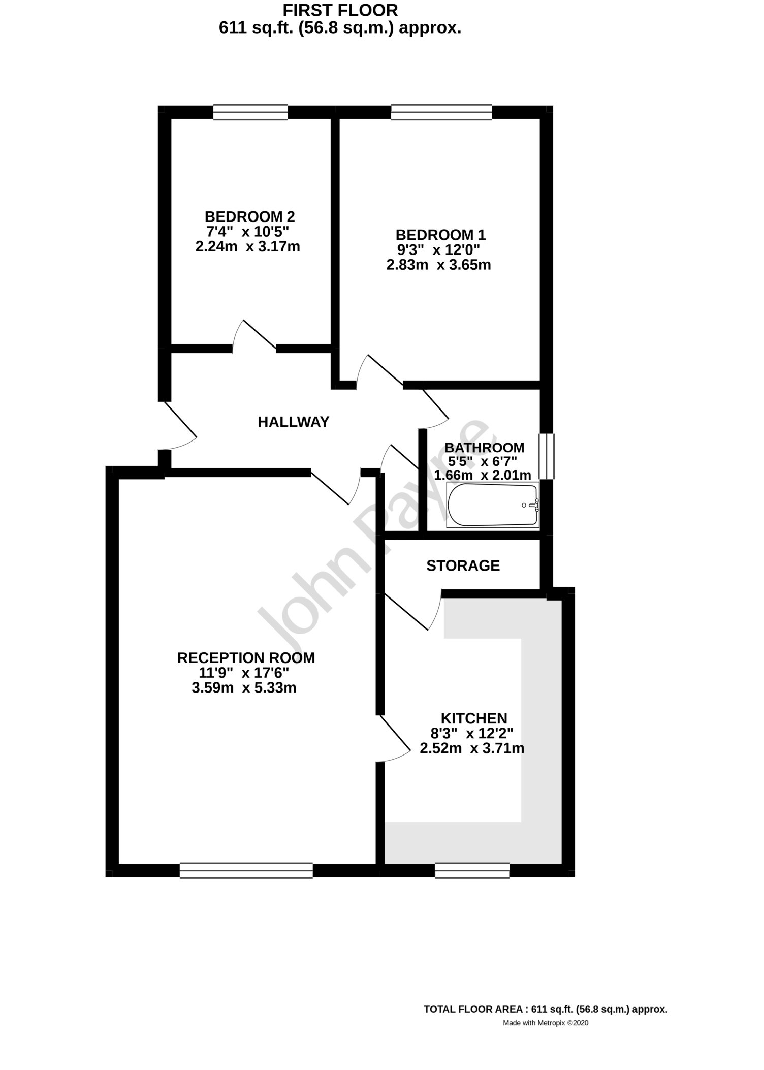 Kitchen 2.52m x 3.71m (8'3" x 12'2") Reception Room 3.59m x 5.33m (11'9" x 17'6") Bedroom One 2.83m x 3.65m (9'3" x 12'0") Bedroom Two 2.24m x 3.17m (7'4" x 10'5") Bathroom 1.66m x 2.01m (5'5" x 6'7")