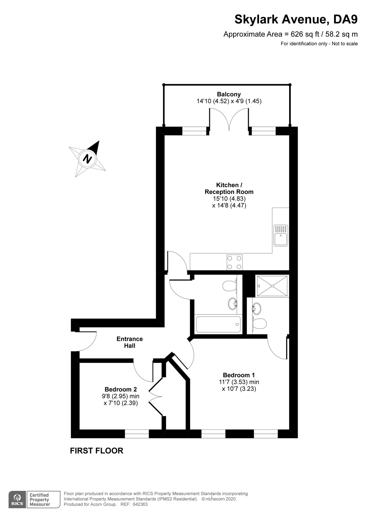 Recception/Kitchen 15'10 x 14'8, Bedroom 1 11'7 x 10'7, Bedroom 2 9'8 x 7'10