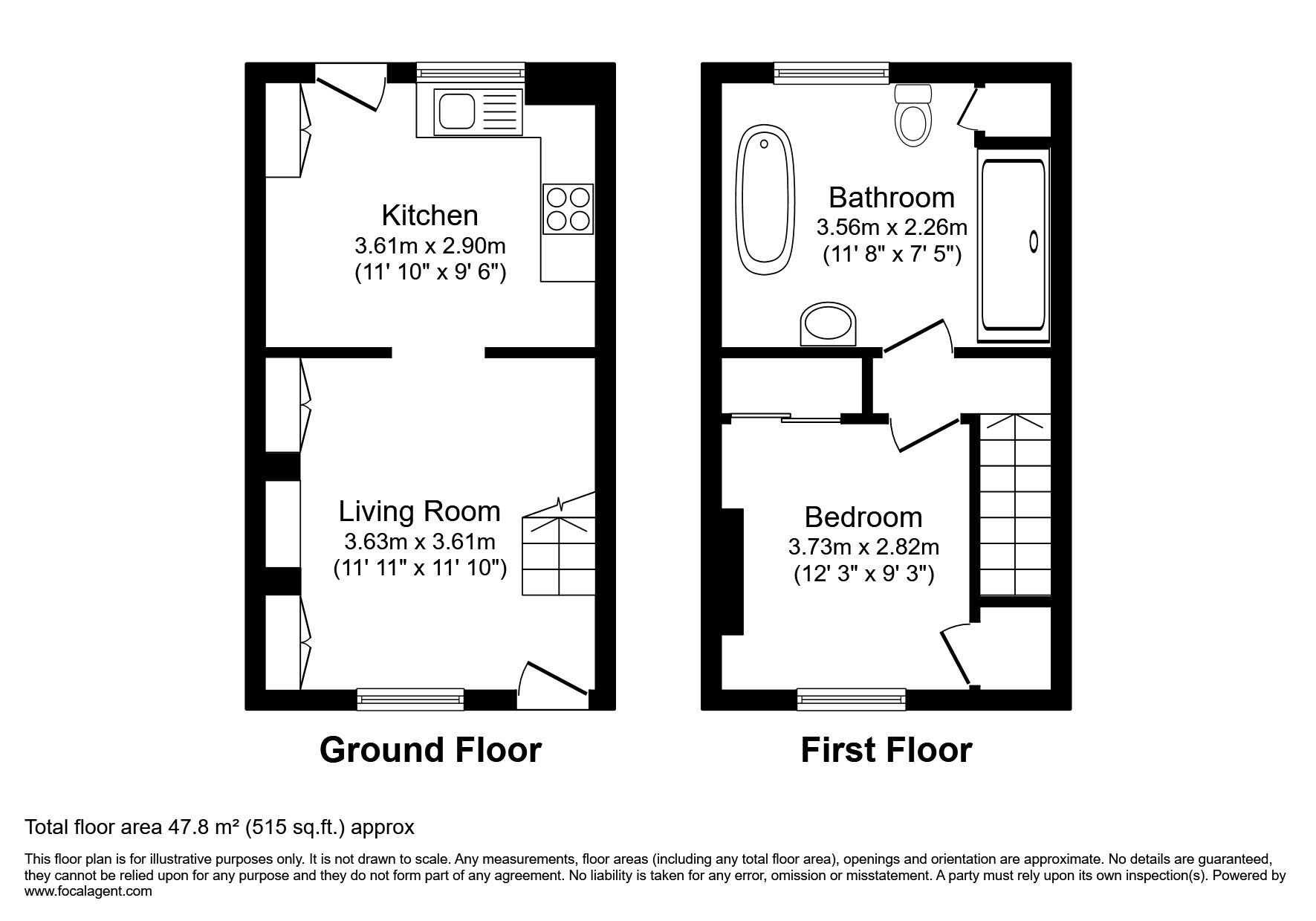 Reception Room 11'11 x 11'10 (3.63m x 3.61m), Kitchen/Dining Room 11'10 x 9'6 (3.61m x 2.90m), Bedroom 12'3 x 9'3 (3.73m x 2.83m), Bathroom 11'8 x 7'5 (3.56m x 2.26m) To check broadband and mobile phone coverage please visit Ofcom here ofcom.org.uk/phones-telecoms-and-internet/advice-for-consumers/advice/ofcom-checker