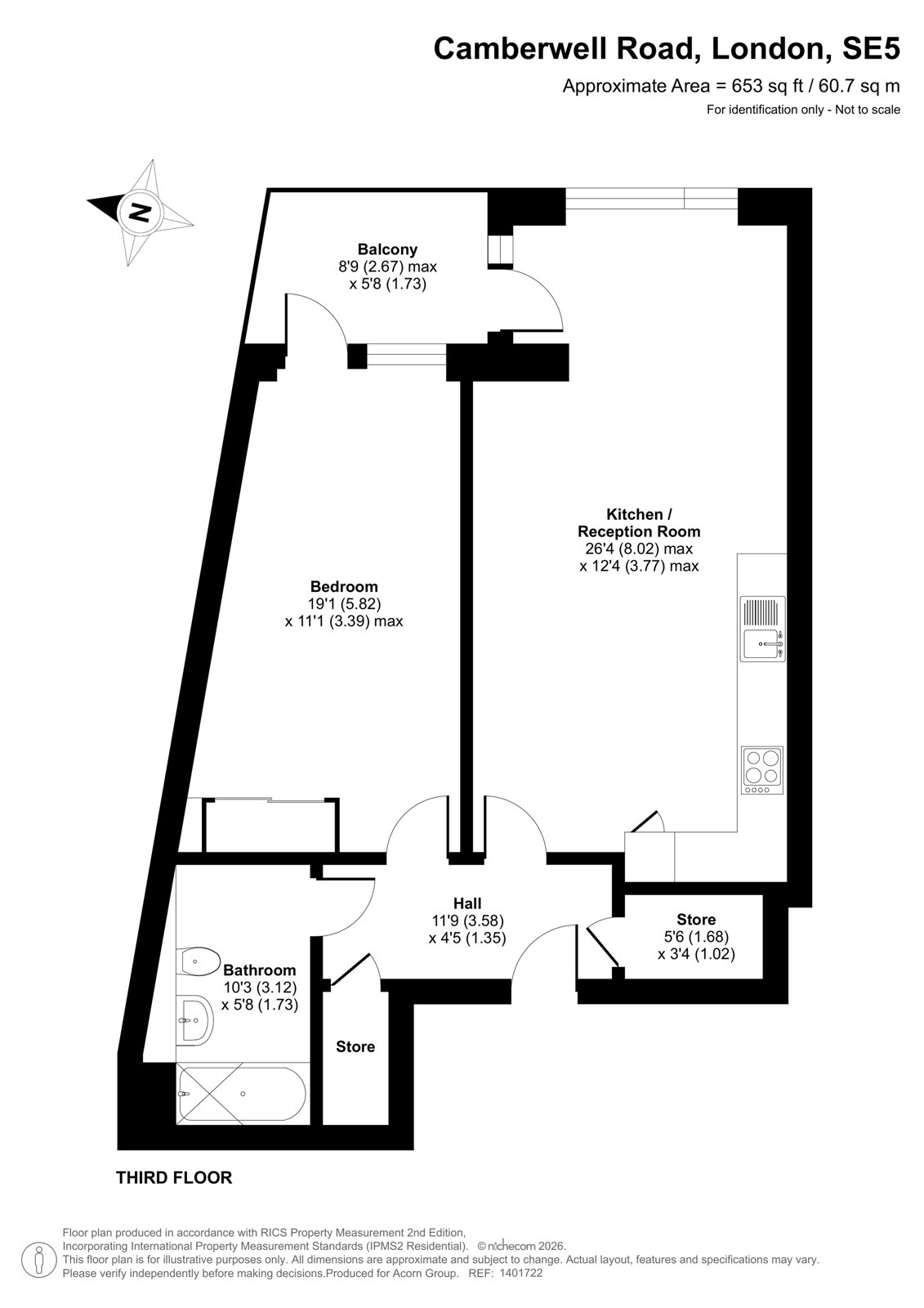 Inside you will find a large bedroom with fitted wardrobes, dual aspect windows and balcony access, a 25ft. reception room with high specification open-plan kitchen and balcony access and a plush bathroom suite which is fully tiled and has a half-mirrored wall. The east-facing balcony catches plenty of sun and the floor to ceiling windows flood the apartment with natural light - both also offer a lovely view over Camberwell Green too.