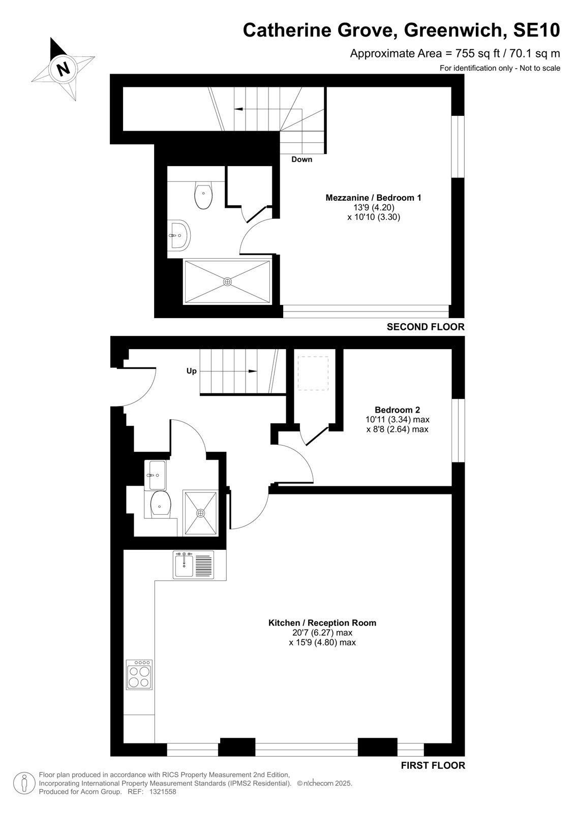 Internally the property boasts 755 square feet which comprises; an impressive open plan reception room with an extraordinary feature window which floods the room with an abundance of natural light. There are two spacious double bedrooms, of which the primary enjoys an en-suite shower room. There is a further shower room which services the other bedroom.