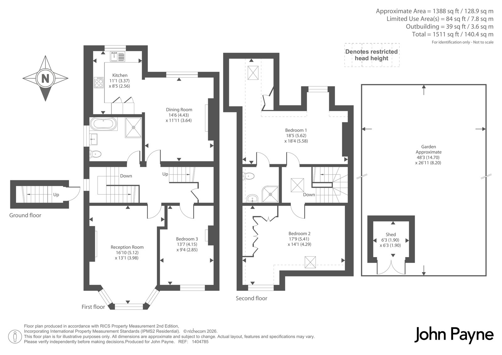 The property blends classic period features with bright, well-balanced accommodation arranged over two floors. The home is accessed via a communal entrance hall with a private front door leading to stairs up to the impressive first-floor landing. This level comprises a spacious dining room with open-plan fitted kitchen, a separate lounge (or fourth bedroom), a third bedroom and a well-appointed family bathroom. The second floor hosts two further generous bedrooms, including a principal bedroom with ensuite shower room.