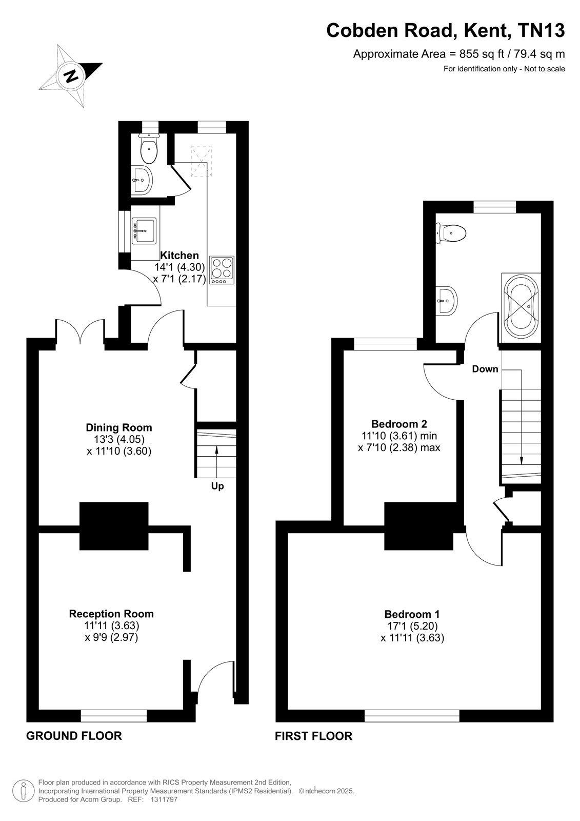 Upstairs, the property offers two bedrooms, including an exceptionally spacious principal double bedroom featuring a sash window and an original fireplace. There is also a fully tiled family bathroom.